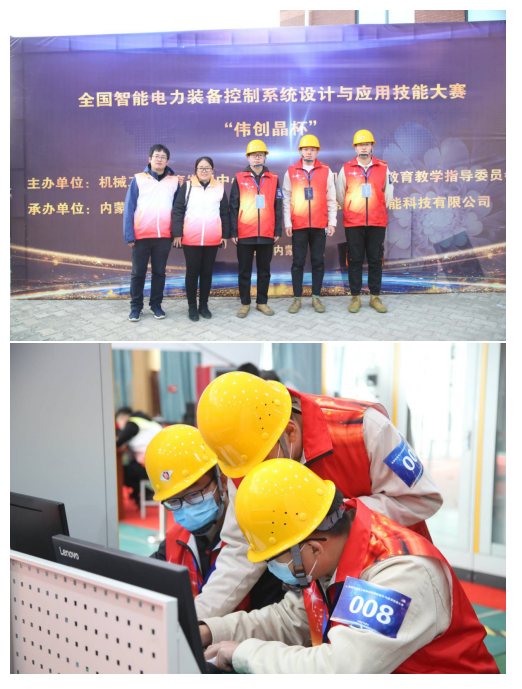 我院代表队为首次参加该大赛,通过高强度的学习和训练,克服了备赛时间短等困难,胡义、陈金鹏、刘伟业三名同学在比赛场上最终获得团体三等奖。比赛期间,我院还与沧州职业技术学院等京津冀高职院校进行了深入交流和探讨,互相学习到了很多宝贵经验。此次全国智能电力装备控制系统设计与应用技能大赛寓教于赛、赛教结合,对进一步推动我院新能源专业群的发展和鼓励更多学生在新能源领域进行学习、探索和实践具有非常重要的意义。通过参加此次大赛,不仅参赛学生的团队协作能力、现场解决问题的能力及创新能力得到了全面提升,还为“双高”建设和搭建职业技能大赛平台提供了有力支撑。