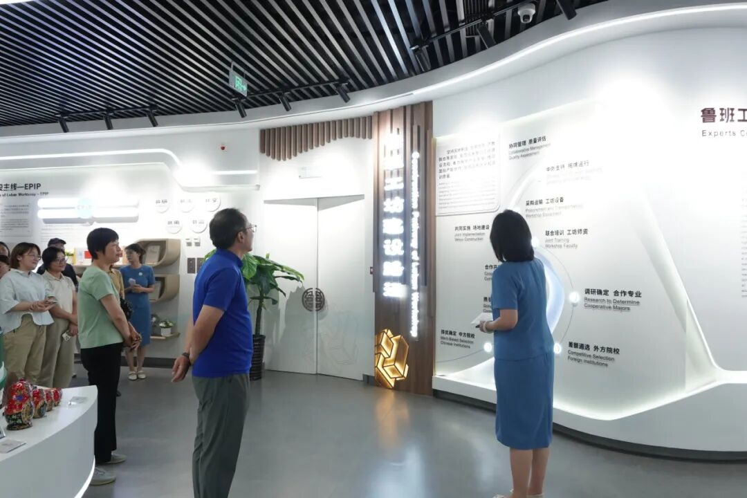 鲁班工坊体验馆占地约1700平方米,共分为核心展区、展览展示区、EPIP(工程实践创新项目)互动体验区、非遗传承区及展望区五个部分,以体验交互、故事共鸣的方式,全面、系统地展示了鲁班工坊建设的标准、路径、模式和贡献。本次活动中,马克思主义学院教师于秋丽、王一珂担任现场讲解。作为鲁班工坊体验馆建设过程的参与者,她们曾多次承担重要讲解任务。此外,马院教师唐英伟、王娇、李婷也深度融入了鲁班工坊体验馆的建设工作。