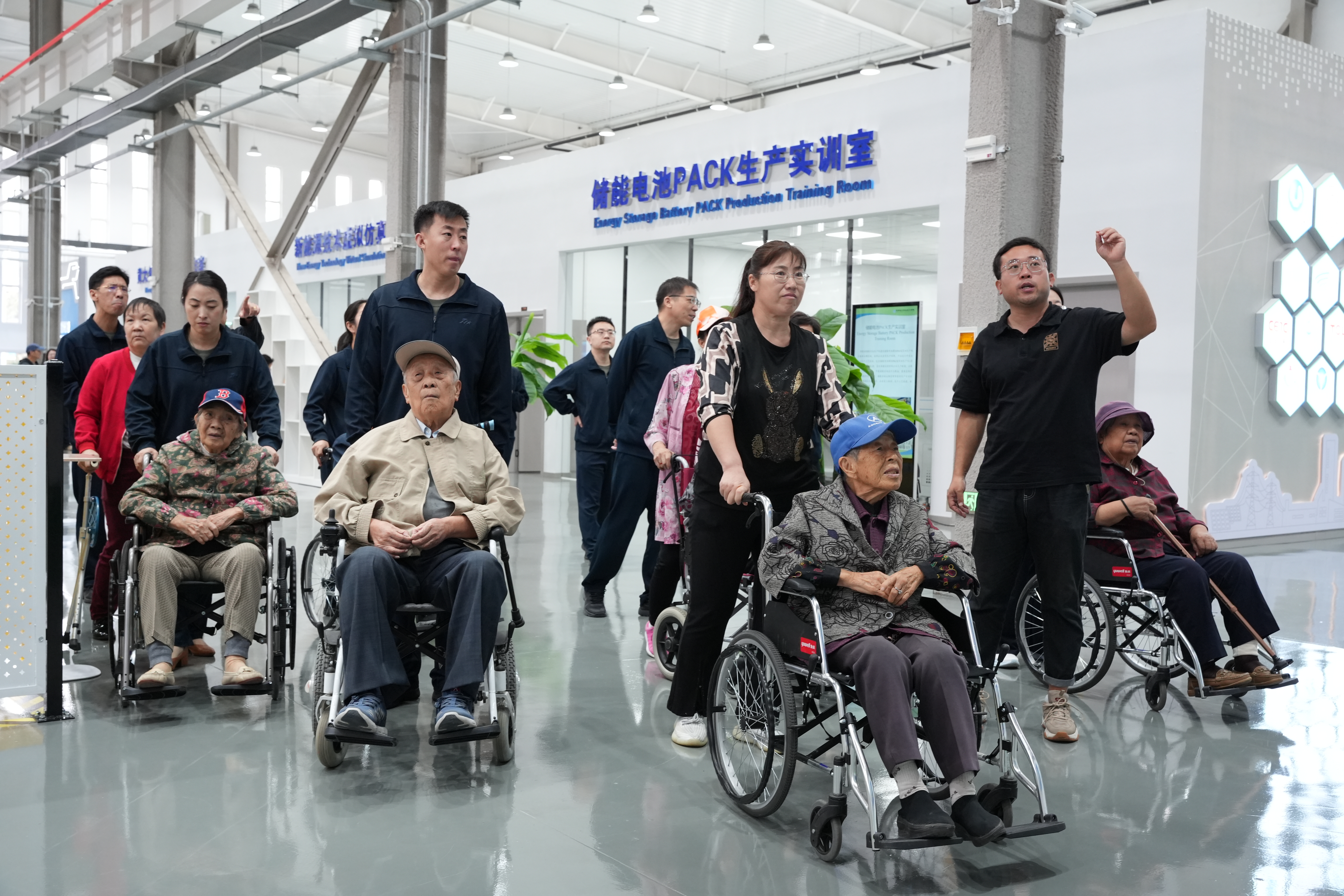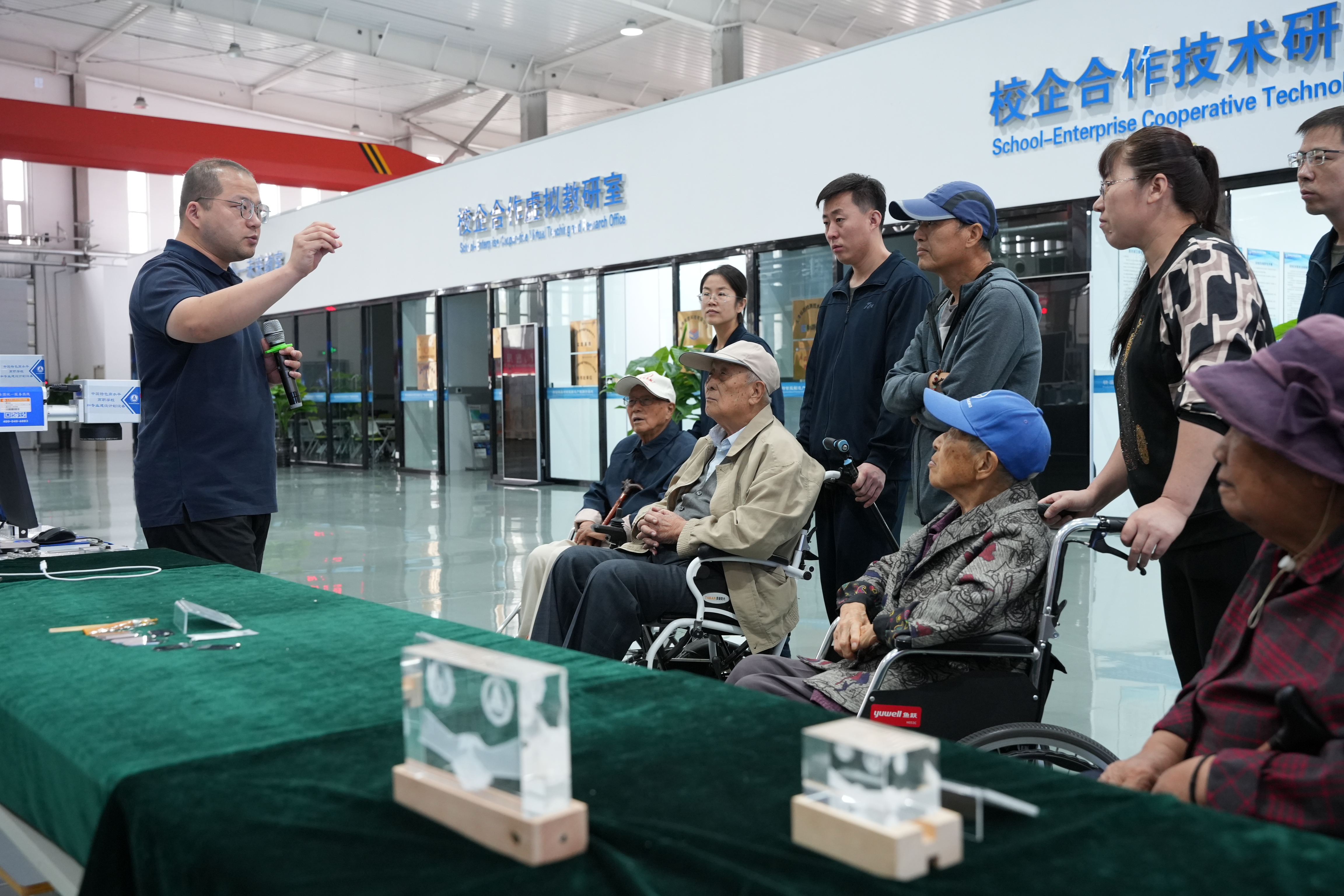 随后,老同志们分别参观了精密模具与智能制造产教融合基地、新能源技术产教融合基地,系统了解了两基地布局及实训室建设情况,以及我院开展技术服务、技术攻关、成果转化的具体情况。