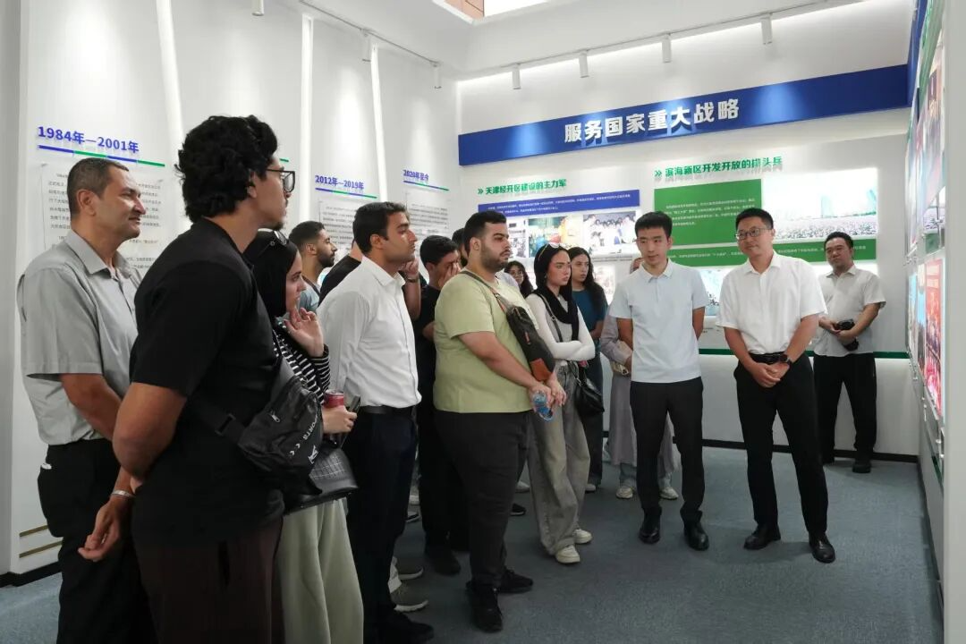 研习营师生首先来到中非泰达投资股份有限公司,参观企业发展历程展厅,并与企业负责人开展座谈交流。师生首先参观了泰达经济开发区40周年成就展,了解泰达发展历程。