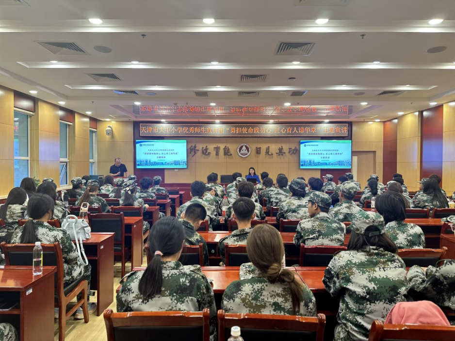 为深入学习贯彻习近平新时代中国特色社会主义思想和党的二十大精神,落实习近平总书记关于教育的重要论述,引导广大青年学生坚定“四个自信”、厚植家国情怀,我院积极开展“大中小学新时代先进人物进校园活动”。9月20日上午,我院邀请天津科技大学申莉老师为我院学生开展“坚定文化自信 激荡复兴力量”主题讲座。本次讲座由党委学生工作部副部长林乐权主持。