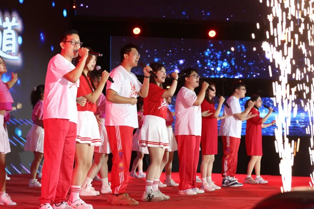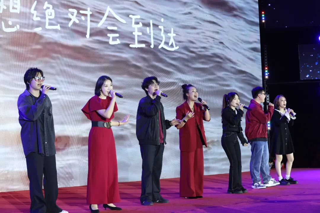 随着《红旗飘飘》和《歌唱祖国》的激昂旋律响起,整场晚会步入尾声。全体演职人员与现场师生共同起立合唱,鲜红的国旗在灯光下格外醒目,嘹亮的歌声里满是对祖国的热爱与祝福。