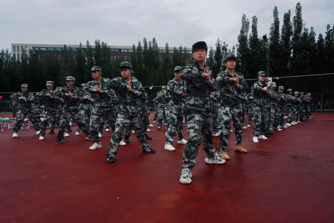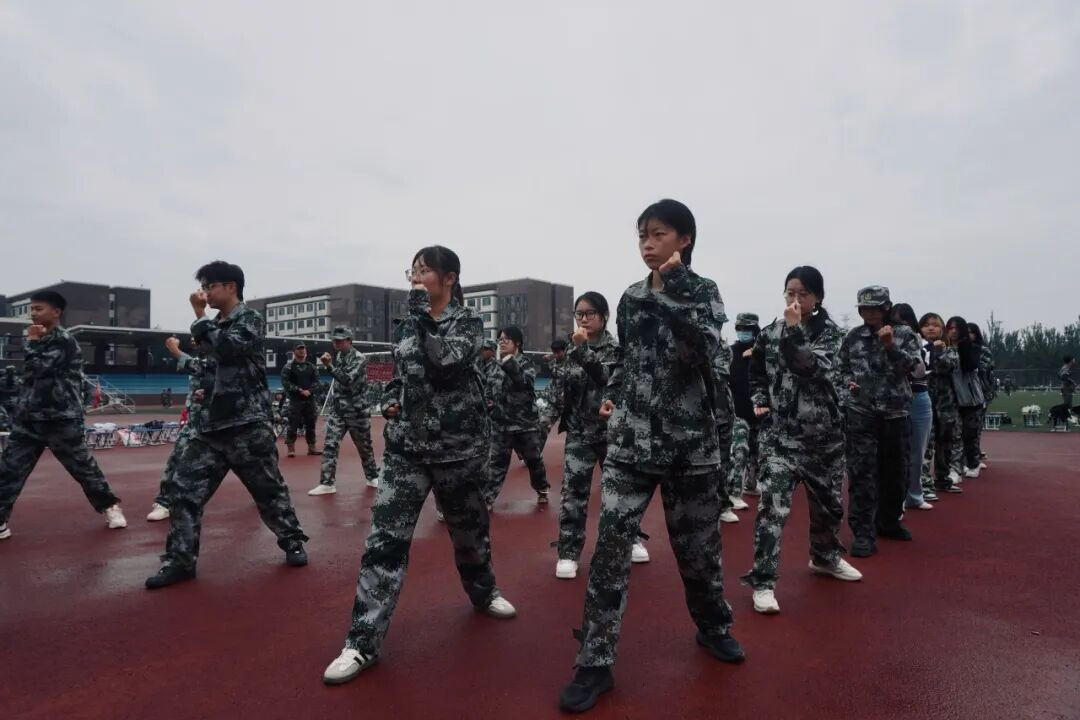 军体拳训练更是点燃全场。“哈!”“嘿!”的呐喊声响彻校园,出拳、踢腿、格挡,动作刚劲有力,眼神坚定执着。从最初的生疏卡顿,到后来的连贯利落,每一次进步都藏着不服输的韧劲,迷彩服上的汗渍,成了青春最酷的印记
