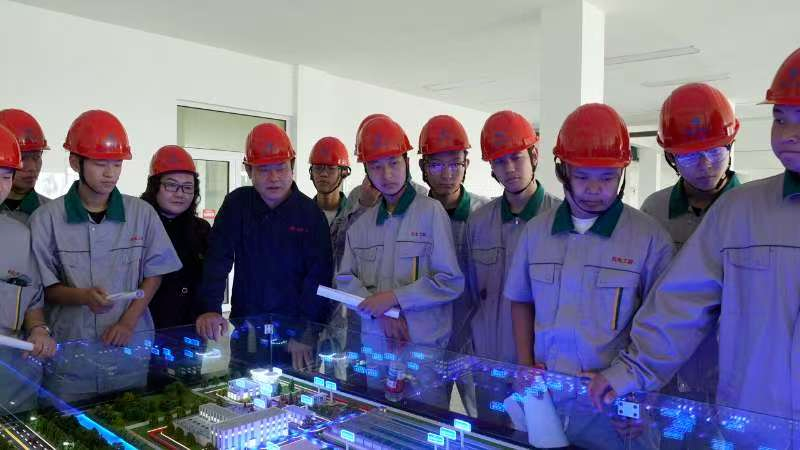 师生在淤泥处理车间开展小组讨论活动