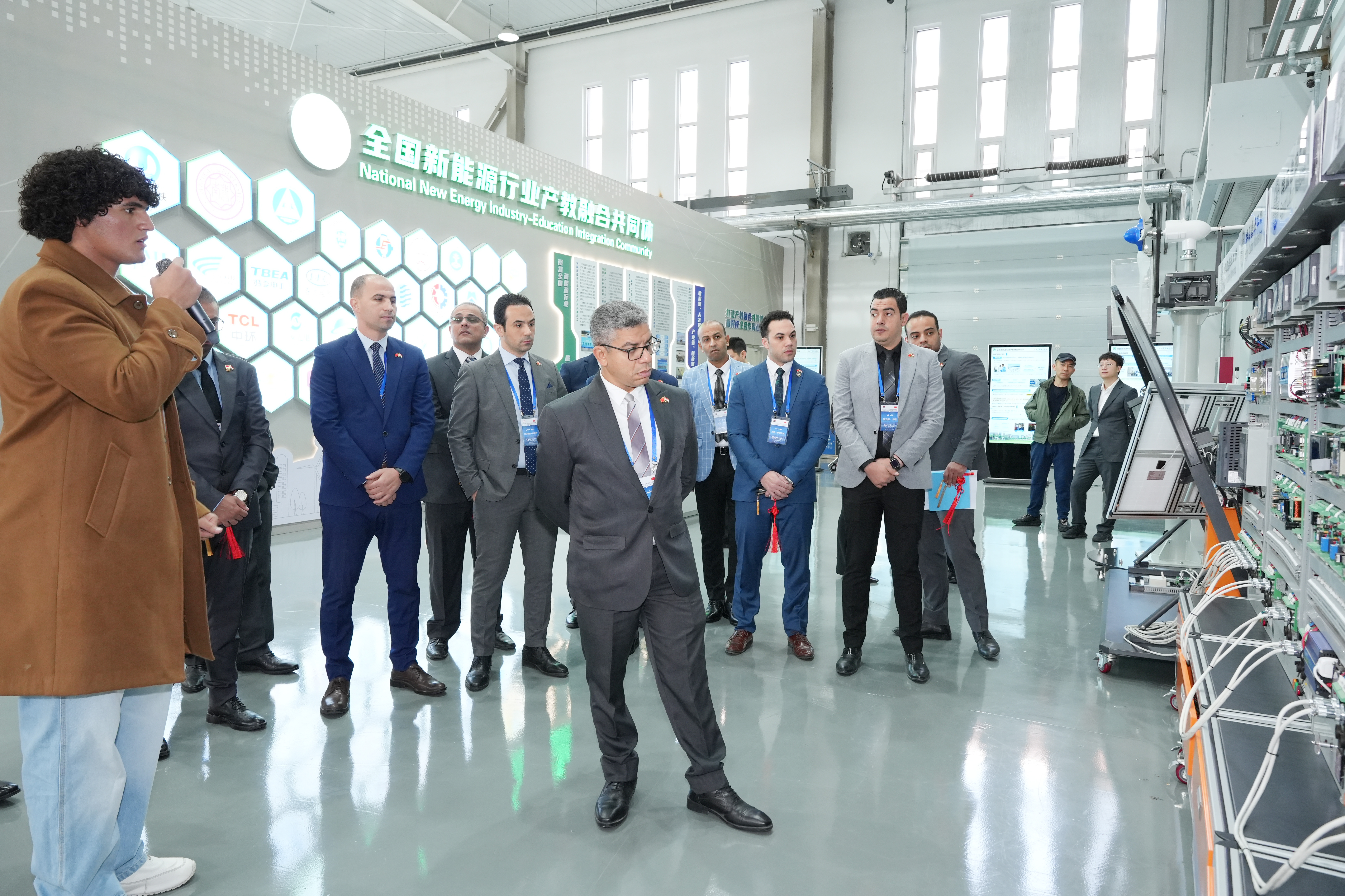 会前,埃及打击网络犯罪研修班参观了学院鲁班工坊体验馆,详细了解了鲁班工坊建设的重要节点和标志性成果,并进行了非遗体验。在精密模具与智能制造产教融合基地和新能源技术产教融合基地,研修班成员系统了解了两基地布局及实训室建设情况,以及我院开展技术服务、技术攻关、成果转化的具体情况。