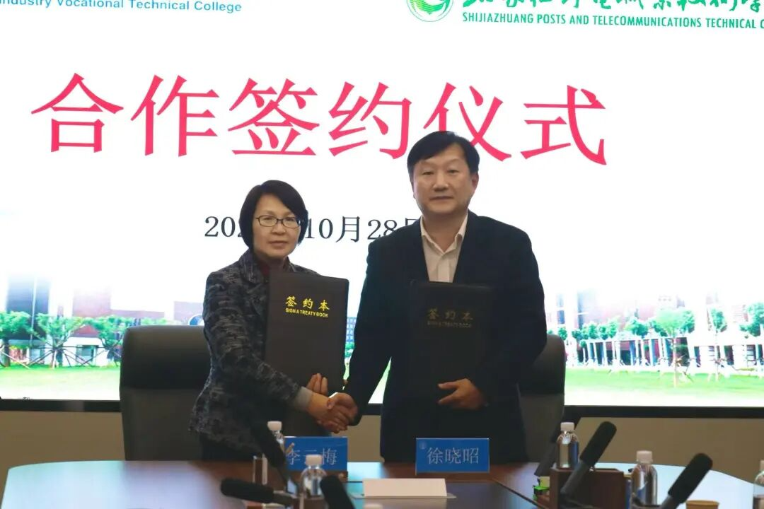 随后,石家庄邮电职业技术学院党委副书记、院长徐晓昭对我院在“五金”建设、产教融合、国际交流与合作等方面取得的成果给予高度赞赏。他表示,希望以此次战略签约为契机,推动双方在人才培养、课程共建、师资交流等方面实现资源共享、优势互补,为区域职业教育高质量发展贡献力量。