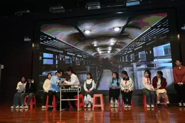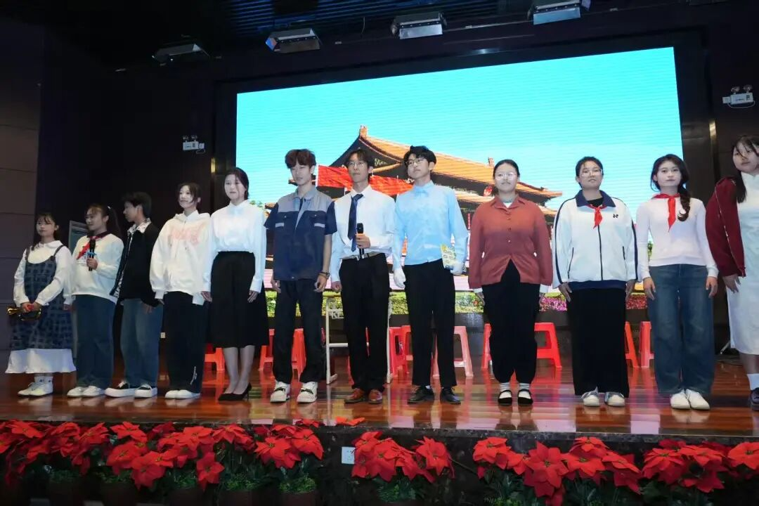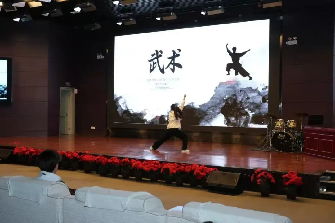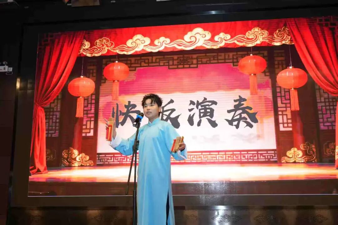 随后,舞台上一系列精彩节目轮番上演:传统武术刚柔并济,彰显华夏儿女的铮铮气魄;快板声声清脆,以诙谐语言讲述时代新声,展现非遗文化的青春活力;话剧表演盛情并茂,引发师生情感共鸣,凝聚起对家与国的热爱之情。